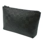 印伝 甲州印伝 印傳屋 上原勇七 ポーチ 化粧ポーチ 4405 変わり市松小 黒地×黒漆 鹿革 本革 レザー 和柄 ブランド YM02
