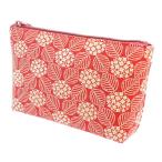 印伝 甲州印伝 印傳屋 上原勇七 ポーチ 化粧ポーチ 4405 あじさい 紫陽花 赤地×白漆 鹿革 本革 レザー 花柄 ブランド 冬ギフト クリスマス 贈り物 YM02