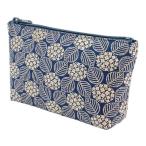 印伝 甲州印伝 印傳屋 上原勇七 ポーチ 化粧ポーチ 4405 あじさい 紫陽花 紺地×白漆 鹿革 本革 レザー 花柄 ブランド YM02
