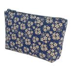 印伝 甲州印伝 印傳屋 上原勇七 ポーチ 化粧ポーチ 4405 忘れな草 紺地×白漆 鹿革 本革 レザー 花柄 ブランド YM02