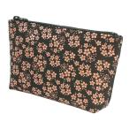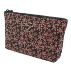 印伝 甲州印伝 印傳屋 上原勇七 ポーチ 化粧ポーチ 4405 雪割草 黒地×ピンク漆 鹿革 本革 レザー 花柄 ブランド YM02