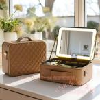 化粧ボックス メイクアップケース 鏡/LEDライト付 化粧箱 コスメボックス 大容量 旅行 コスメ収納ケース メイクブラシポケット 手持ち 自立式 プロ用 持ち運び
