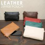 名入れ ヌメ革 ジッパー ポーチ シンプル 刻印付き 小物入れ 化粧ポーチ インナーバッグ ミニショルダー 薄手 柔らかい ギフト