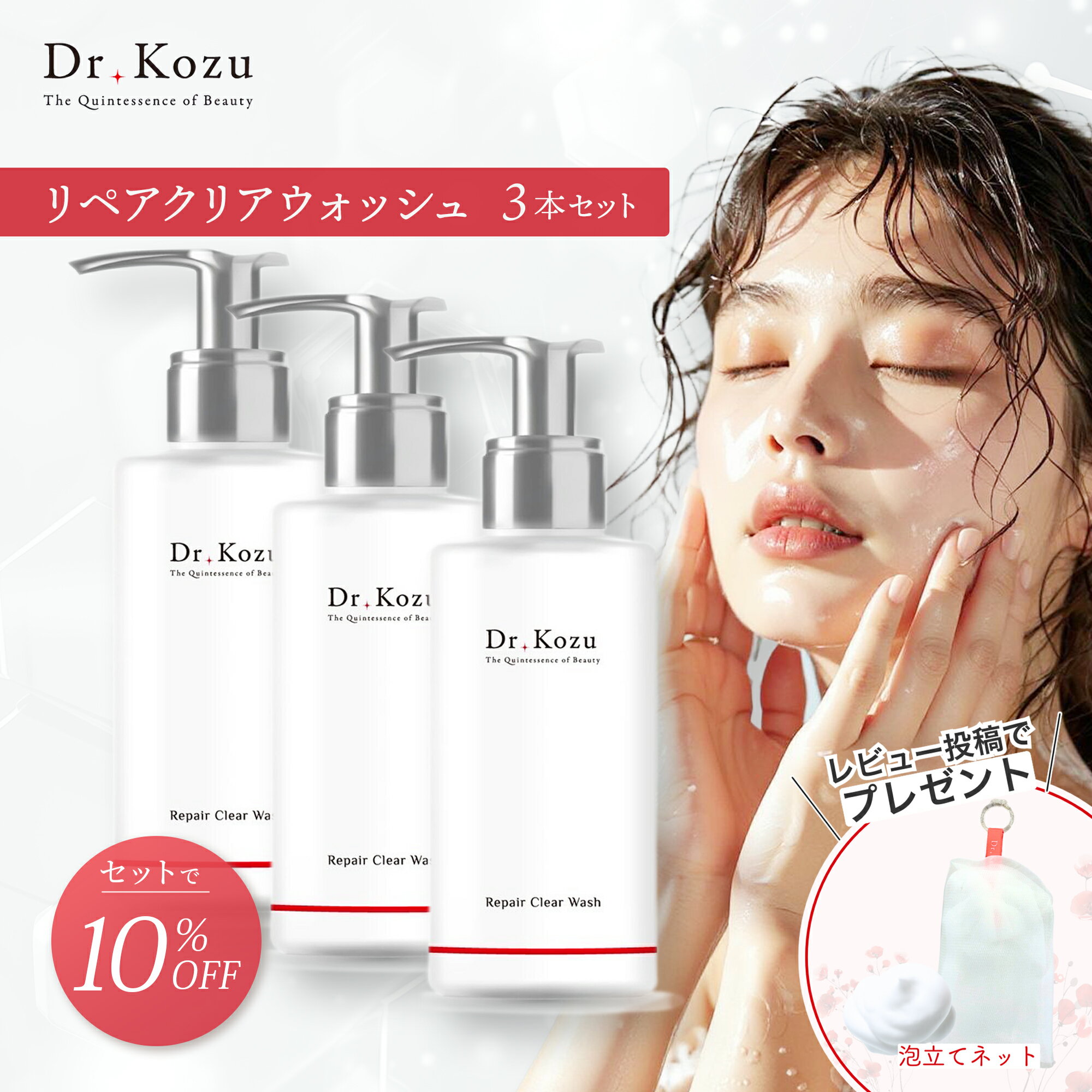 【セットで10%OFF】 公式 Dr.Kozu リペアクリアウォッシュ 120g 3本セット | フェイシャルウォッシュ 洗顔フォーム 濃厚泡 無添加 低刺激 スキンケア 毛穴ケア 洗顔 高品質 敏感肌 ハリ 透明感 サロン専売品 ドクターコズ 正規品 日本製