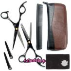 【数量わずか! 特別セール価格】散髪はさみ ヘアカット スキハサミ 髪切りはさみ 2本セット 理美容プロ仕様 ケース付き 自宅でヘアメイク 業務用 理容師 プロ用 シザー カットシザー セニングシザー 収納ケース付き(ブラックケース)