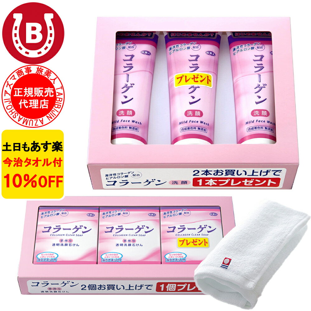 10%OFF 今治タオル付 アズマ商事 旅美人 コラーゲン洗顔クリーム コラーゲン透明洗顔石鹸 お得な各3個セット アズマ商事 旅美人 コラーゲン 洗顔クリーム 洗顔石鹸 送料無料 スキンケア 洗顔料 洗顔フォーム