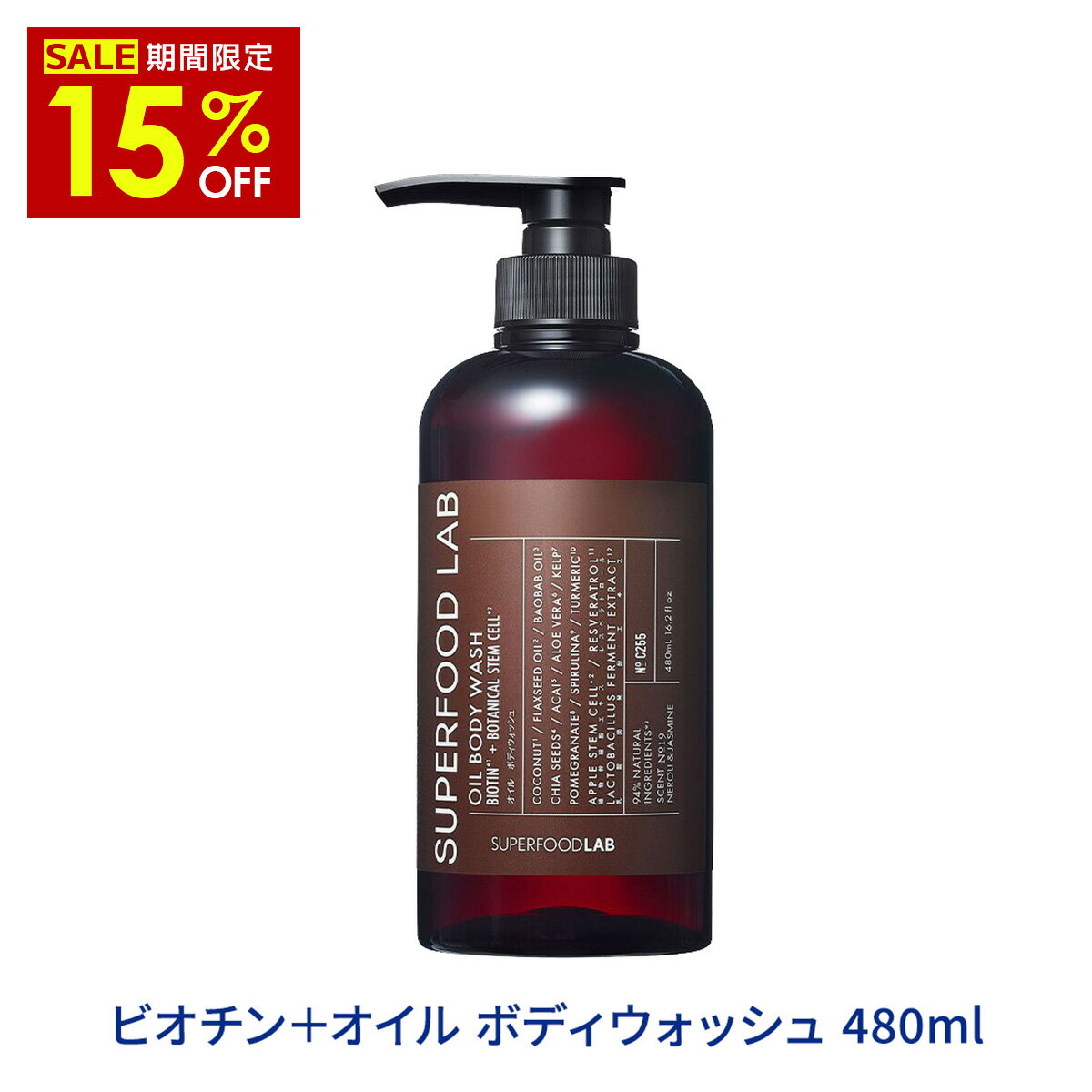 スーパーSALE【 15%OFF 】SUPERFOODLAB ビオチン+オイル ボディウォッシュ 480ml スーパーフードラボ 液体 / バスタイム / ボディケア / ボディーウォッシュ / 液体ボディソープ / ボディソープ / ボディソープ 全身 メンズ レディース 泡 無添加 泡タイプ 石けん