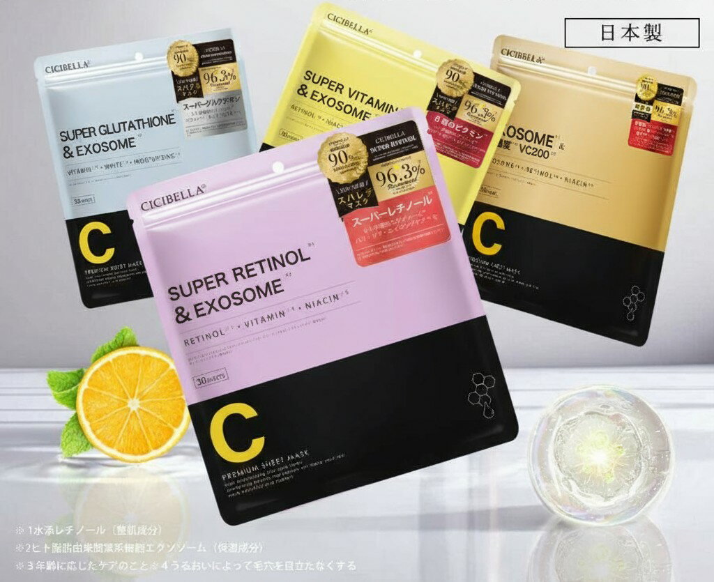 【ブラックフライデークーポン!新シリーズ誕生!日本製!】CICIBELLA シートマスク 30枚 大容量 高保湿 マスク VC200 ヒト幹細胞 フェイスパック フェイスマスク 毛穴 顔パック トラブル肌 エクソソーム EXOSOME レチノール ビタミン 保湿 美肌 スキンケア コスメ