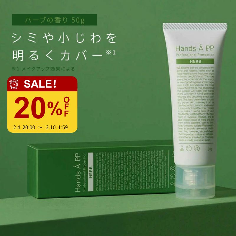 送料無料 ハンドクリーム ギフト プレゼント 50g ハンドケア ハーブ 香り 保湿クリーム 手荒れ 肌荒れ 低刺激 カサカサ スキンケア シミ しみ 手の甲 二の腕 トーンアップ 乾燥 小じわ 目立たせない シミ消し シミ隠し 効果効能試験済 【 Hands Å P.P. HERB 】