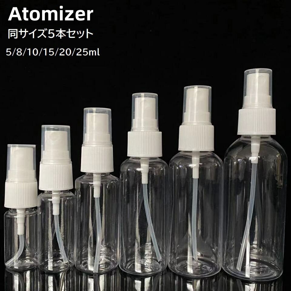 送料無料 アトマイザー 5本セット 詰め替え容器 スプレーボトル ミニボトル 携帯用 持ち運び 旅行 化粧水 アルコール消毒 香水 ディスペンサー 透明 クリア プラスチック 小分け