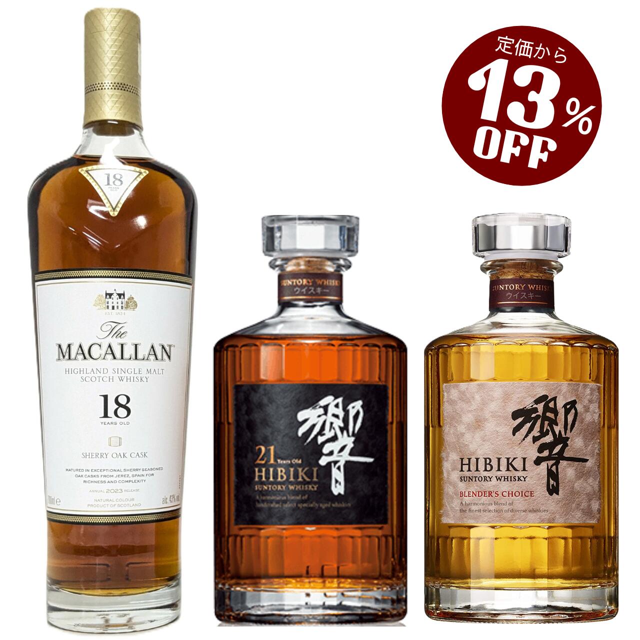 【定価13%OFF!】 ジャパニーズウイスキーセット サントリー 響21年/響ブレンダーズチョイス/マッカラン18年 シェリーオーク Japanese Whisky ウイスキー 飲み比べ 3本セット 正規品 ギフト 贈り物 プレゼント