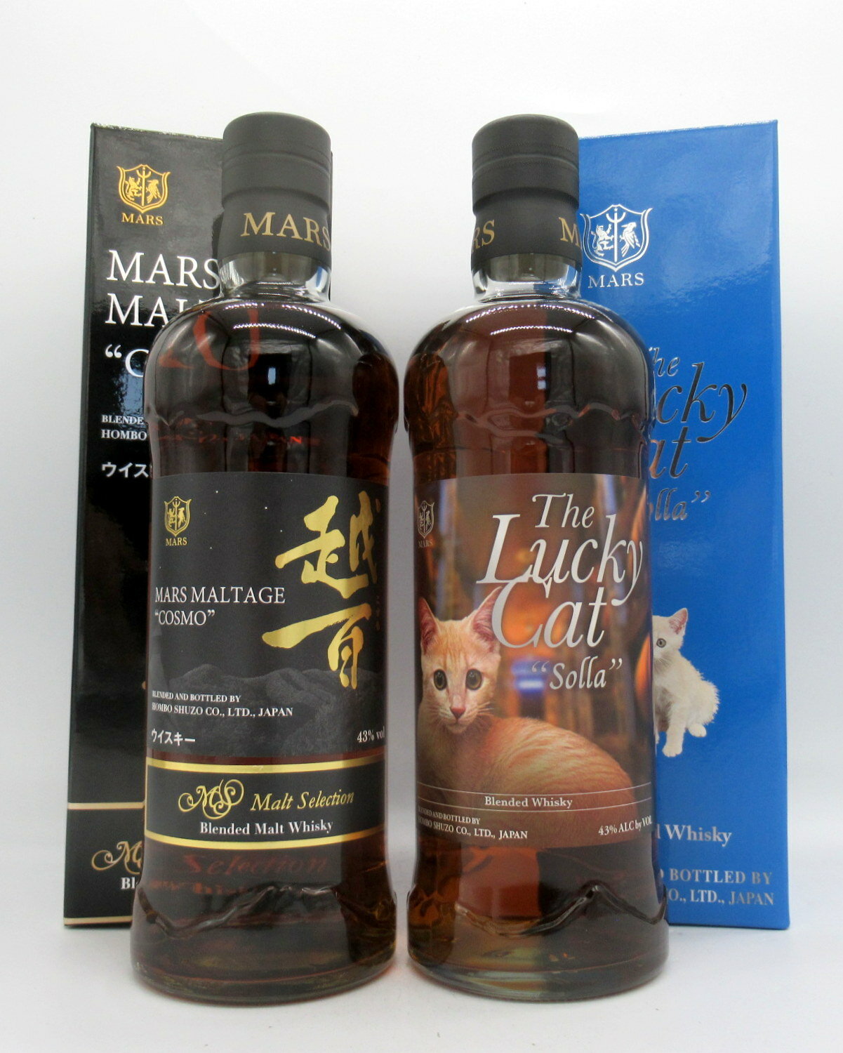 【4本以上5%OFFクーポン】【ポイント】【専用カートン付】ブレンデッドモルト マルスウイスキー ザ・ラッキーキャット ソラ 43% 700mlを含む2本セット(正規品)【マルス駒ヶ岳蒸溜所】【ジャパニーズ】【本坊酒造】【国産ウイスキー】