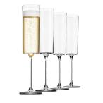 ガラス製シャンパンフルート4パック、6-オンスのシャンパングラス4個セット、プレミアム方形エッジの吹きガラスのプロセッコワイングラス