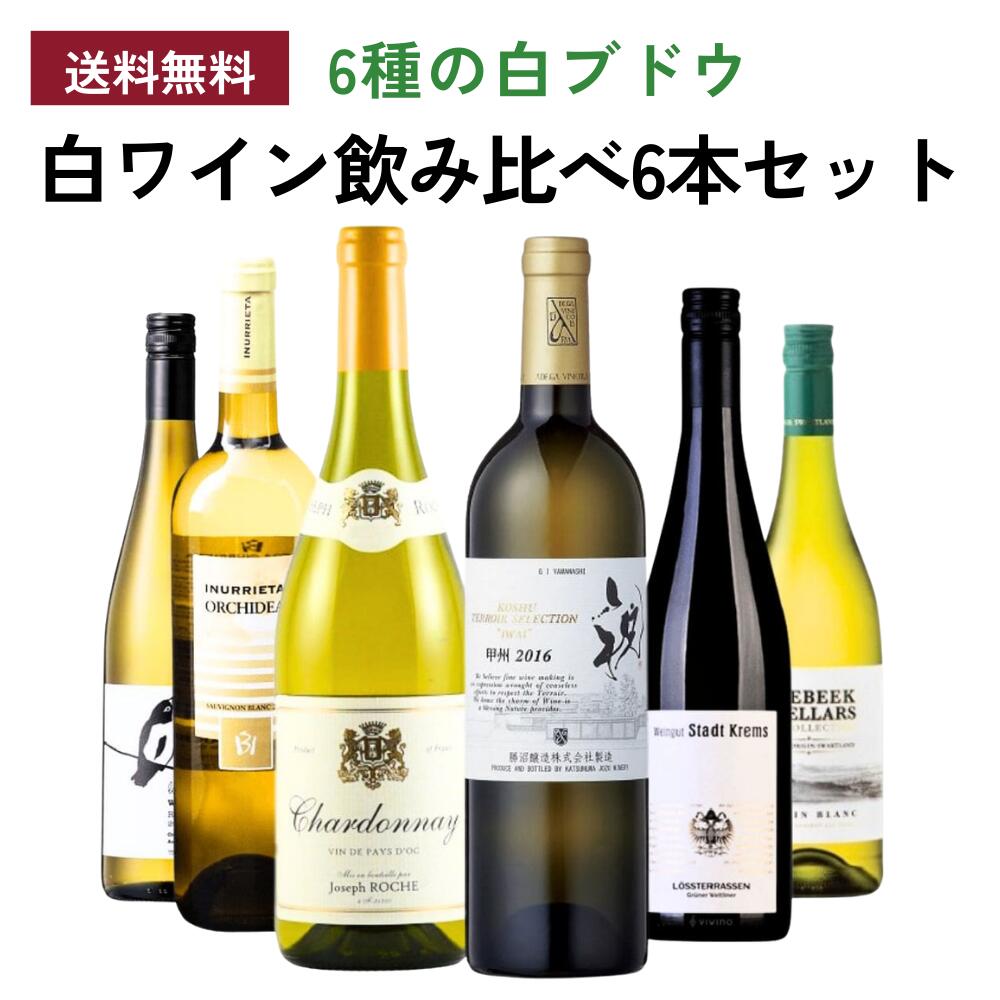 【スーパーセール10%OFF】【6種の白ブドウ】白ワイン飲み比べ6本セット シャルドネ/ソーヴィニヨンブラン/リースリング/シュナン ブラン/グリューナーフェルトリナー/甲州 ソムリエ試験