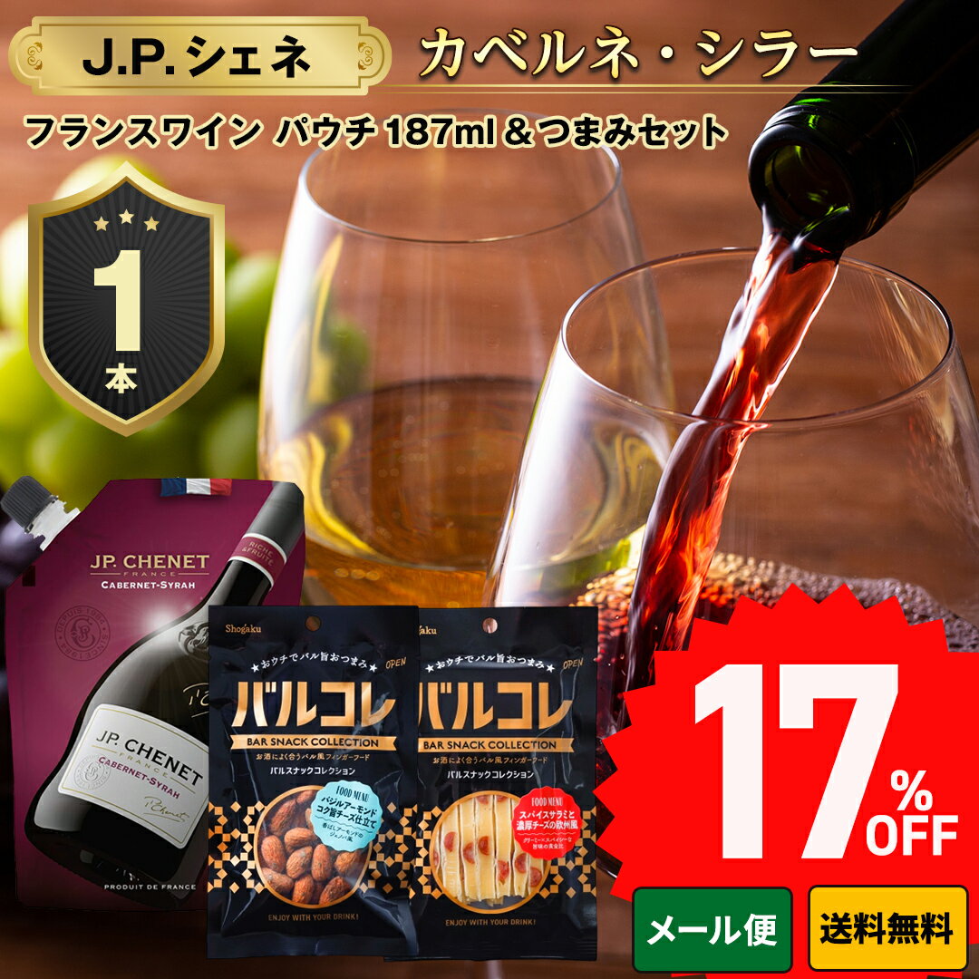 【賞味期限:2026/3/1以降】 17%OFF ワイン 送料無料 赤ワイン JPシェネ 1本&高級おつまみ バルコレセット【メール便】「JB-1」 お酒 赤ワイン wine JP.CHENET イージパック カベルネ・シラー パウチ つまみ バルコレ