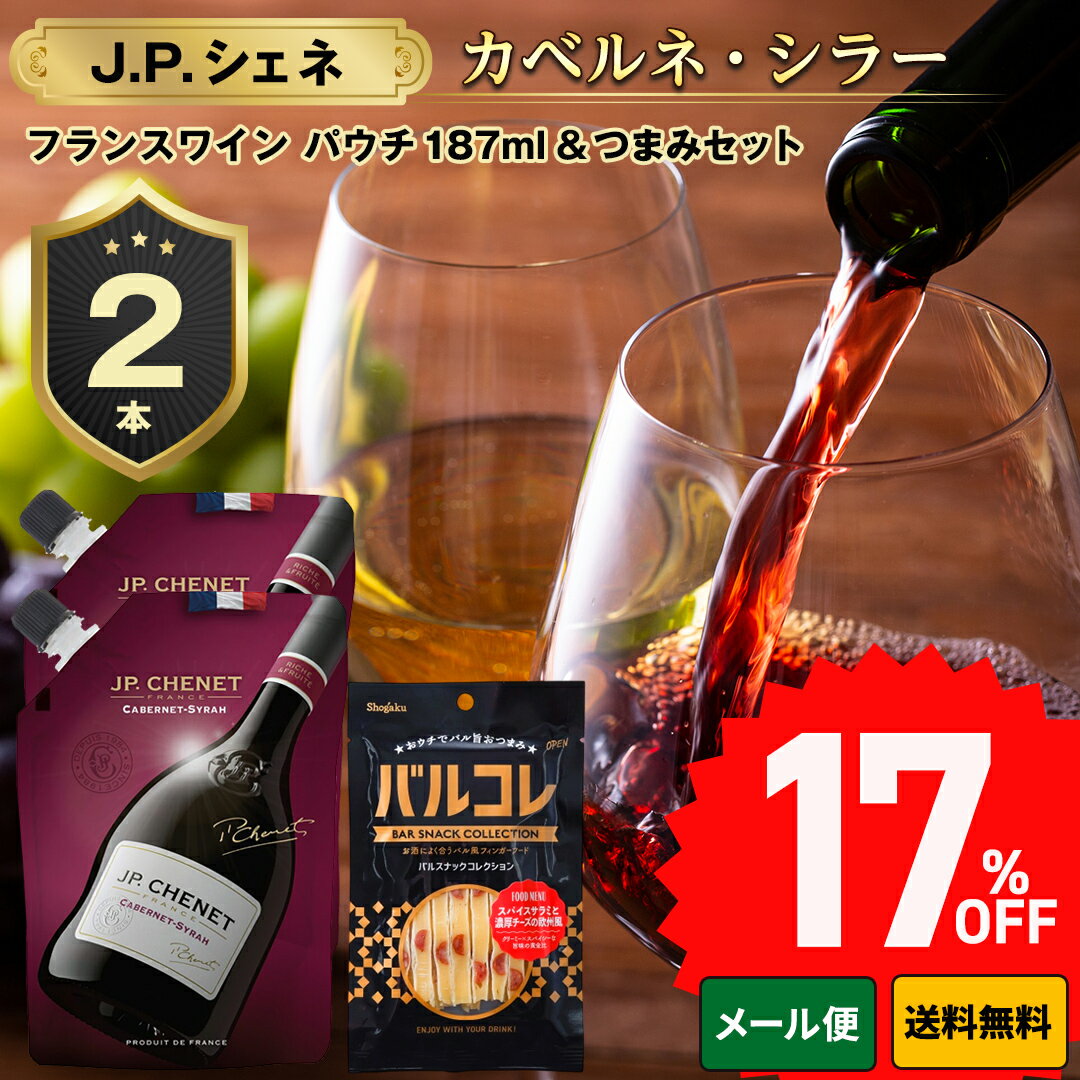 【賞味期限:2026/3/1以降】 17%OFF ワイン 送料無料 赤ワイン JPシェネ 2本&高級おつまみ バルコレセット【メール便】「JB-4」 お酒 赤ワイン wine JP.CHENET イージパック カベルネ・シラー パウチ つまみ バルコレ