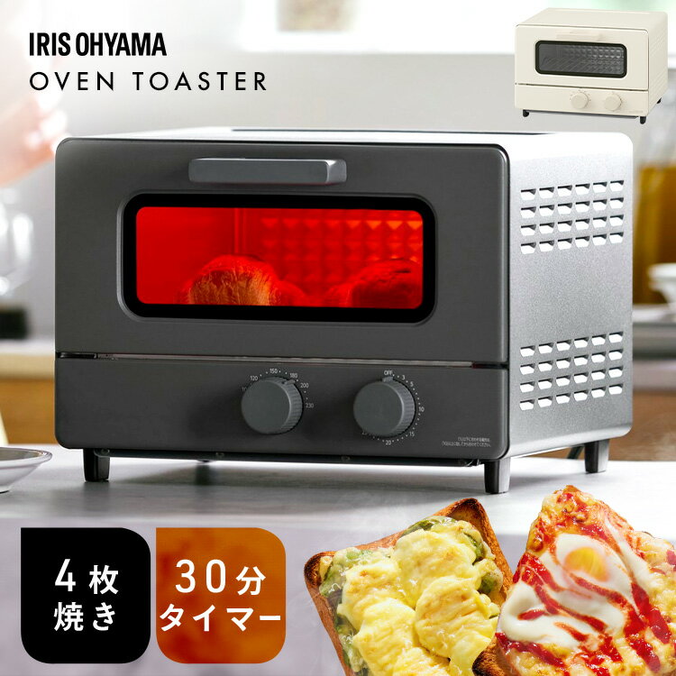 トースター オーブントースター 2枚焼き 4枚焼き おしゃれ かわいい 角皿付き 80℃ 230℃ 無段階調整 タイマー付き 新生活 シンプル アイリスオーヤマ※注文確定時に時間指定のプルダウ...