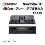 N3WV5RWTQ1 ノーリツ ビルトインコンロ 天板幅60cm 3口 メタルトップシリーズ 無水両面焼 サイドモールレス仕様 グレーホーロートップ Noritz