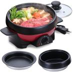 アビテラックス 電気 グリル鍋 2〜3人用 電気グリルパン APN-18G-R レッド ブラック APN18G-R Abitelax
