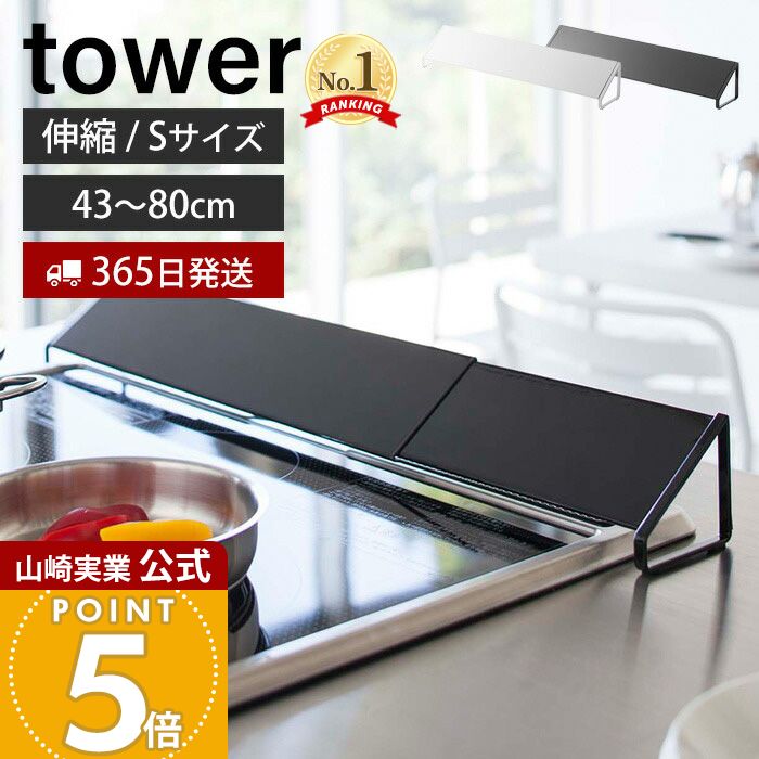 ガスコンロ奥 隙間ラック タワー tower 油汚れガード 山崎実業 yamazaki キッチン収納 IHガスキッチン 隙間