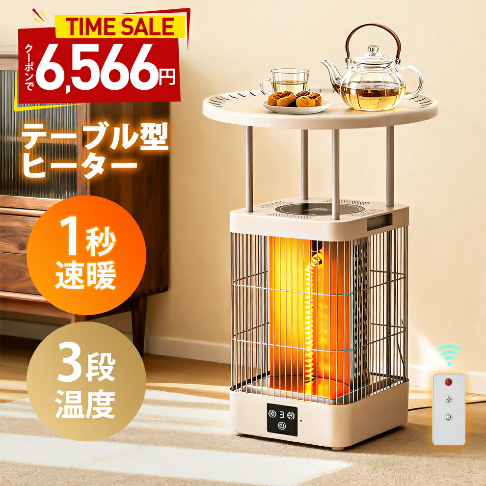 「クーポンで6,780円」ヒーター 電気ストーブ セラミックヒーター 1秒速暖 テーブル型 9段タイマー テーブル一体型ヒーター 自動転倒OFF 過熱防止