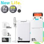 【新品】家電セット 7点 冷蔵庫 87L 洗濯機 5kg 電子レンジ 17L 炊飯器 3合 掃除機 ケトル 800ml トースター 2枚焼き 新生活 一人暮らし アイリスオーヤマ