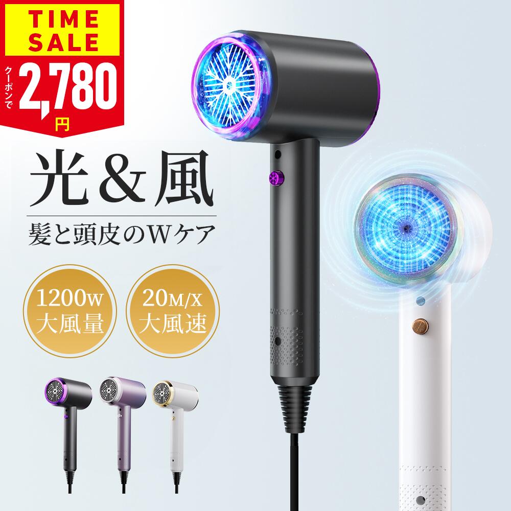 ヘアドライヤー 速乾 1200W大風量 マイナスイオン&ライトWケアー 20m/s高速風 温冷風切替 風速3段階調整 恒温装置搭載 静音 保湿 省エネ 母の日 プレゼント