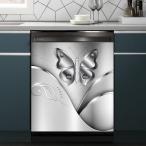 【並行輸入品】グレー バタフライ 冷蔵庫ステッカー 彫刻 蝶 ステッカー ホーム キッチン 装飾 ステンレススチール パターン ドライヤー 冷蔵
