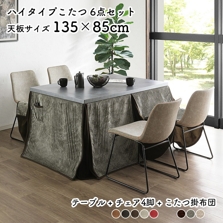 【全商品に使える2%offクーポンあり!!】 こたつ セット こたつ布団 4人用 ハイタイプ 135 炬燵 こたつ6点セット 135cm こたつセット 4人掛け 長方形 幅135 チェア4脚 回転式 PVC 合成皮革 収納ポケット ハロゲンヒーター 手元コントローラー