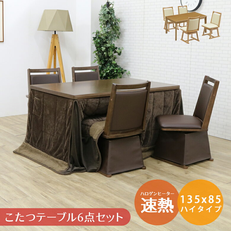【全商品に使える10%offクーポンあり!!】 こたつダイニングテーブルセット 135cm こたつテーブル 6点セット 幅135cm こたつチェア 回転椅子 こたつ布団 収納ポケット付き ハロゲンヒーター 暖卓 こたつ本体のみ 和風 モダン