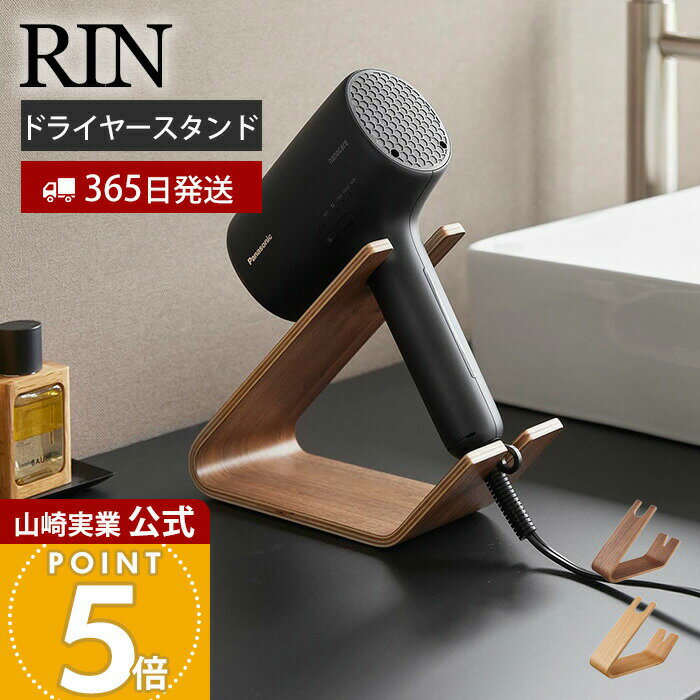 【365日出荷】山崎実業 ドライヤー&ヘアーアイロンスタンド リン RIN 公式 ドライヤー収納 ドライヤー置き ドライヤー掛け サッと使える 木目 天然木 おしゃれ ハンズフリー ブラウン ナチュラル 1332 1333