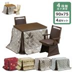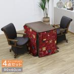 爆買 ダイニングこたつセット 4点セット 幅90cm こたつテーブル 長方形 ハイタイプこたつ こたつセット こたつ布団 チェア 高さ調節 コタツ 暖卓