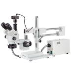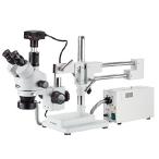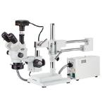 【平行輸入品】AmScope 7X-45X LED光ファイバライトと10MPカメラ付きサイマルフォーカル三眼鏡ブームステレオ顕微鏡