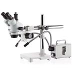 【平行輸入品】AmScope 双腕LED光ファイバーライトとスタンドシングルアームブームに3.5X-180X三眼鏡ステレオズーム顕微鏡