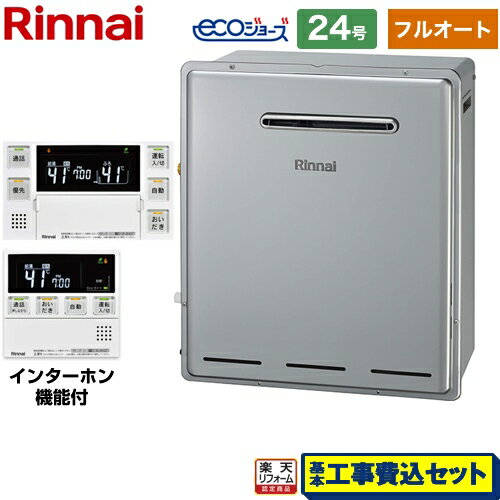 【楽天リフォーム認定商品】【工事費込セット(商品+基本工事)】 [RUF-E2405AG(B)13A+MBC-240VC-A] 屋外据置型 リンナイ ガス給湯器 RUF-Eシリーズ 24号 インターホンリモコン付属 【フルオート】 【都市ガス】
