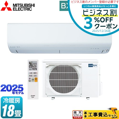 【ビジネス割メンバー登録で3%OFFクーポン★12/26迄】 【工事費込セット(商品+基本工事)】 [MSZ-BXV5625S-W] BXVシリーズ 霧ヶ峰 三菱 ルームエアコン 冷房/暖房:18畳程度 ピュアホワイト 【楽天リフォーム認定商品】 【1000円OFFクーポン有★2025/12/1迄】
