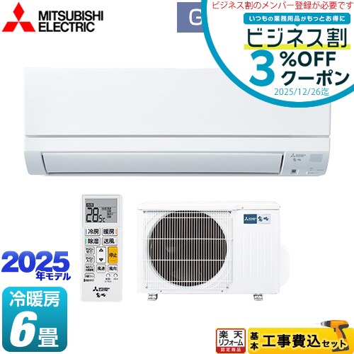 【ビジネス割メンバー登録で3%OFFクーポン★12/26迄】 【工事費込セット(商品+基本工事)】 [MSZ-GE2225-W] GEシリーズ 霧ヶ峰 三菱 ルームエアコン スタンダードモデル 冷房/暖房:6畳程度 ピュアホワイト 【楽天リフォーム認定商品】