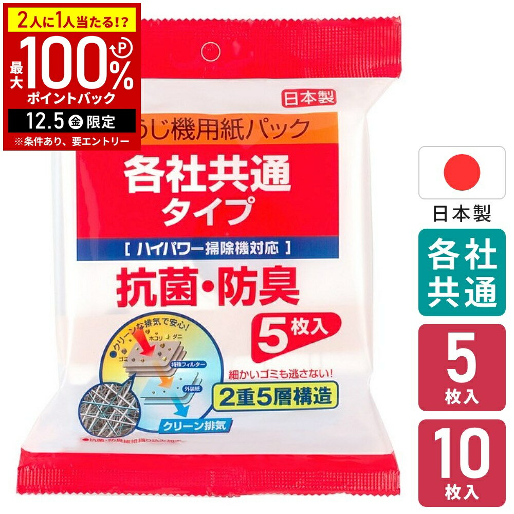 【半額 & 5%OFFクーポン12/1限定 利用条件あり】 掃除機 紙パック 各社共通 掃除機用紙パック 5枚入り 10枚入 各社共通タイプ 抗菌 防臭 パナソニック ナショナル 東芝 日立 サンヨー 三菱 シャープ NEC 小泉 アイリスオーヤマ 共通