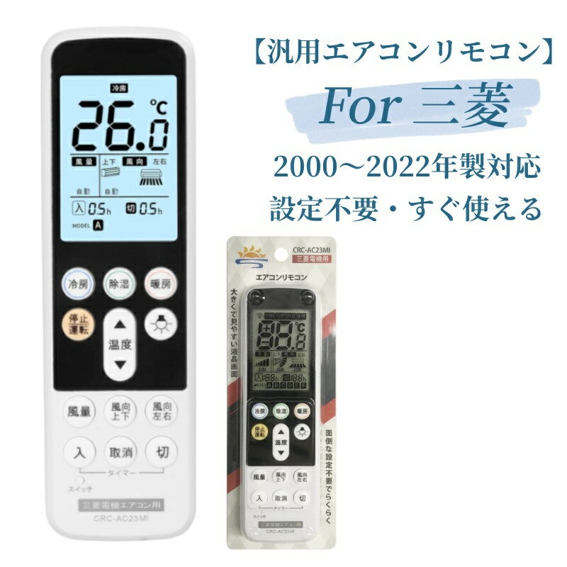 \10%OFFクーポン★P5倍/三菱 エアコン用 リモコン 日本語表示 MITSUBISHI 三菱電機 設定不要 互換 0.5度調節可 大画面液晶パネル バックライト付 自動運転タイマー付 日本語説明書付 代用 予備 スペア 買い替え リモコン増設 汎用 2000〜2022年製対応 互換リモコン 家庭用