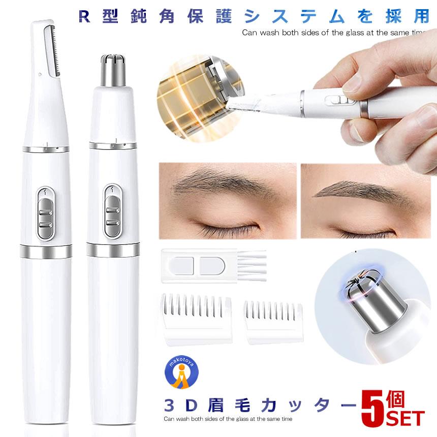 ★10%OFF!楽天スーパーセール★ 5個セット 眉毛 シェーバー R形状 乾電池式 男女兼用 眉毛カット 水洗い 鼻毛カッター フェイスシェーバー 産毛剃り 顔剃り 頬 鼻毛 髭 腕 もみあげ メンズ レディース 送料無料 COROSHE