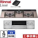工事費込みセット Lisse リッセ 乾電池タイプ ビルトインコンロ 幅75cm リンナイ RHS71W42J2RSTW-13A オーブン接続対応 スモーキーピンク 【都市ガス】