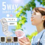 ハンディファン 扇風機 首掛け 首かけ 5WAY USB充電式 持ち運び 携帯 強風 ネックストラップ ライト付き 卓上 スマホスタンド LEDライト 鏡 ミラー