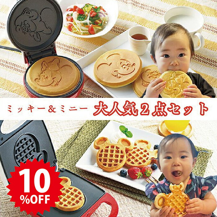 【 SS限定 10%OFF】【 無料 クリスマス ラッピング 】\ミッキー大人気2点セット /ワッフルメーカー ホットサンドメーカー ダブル ★無料包装★ MM-210 便利 キッチン家電 食パン かわいい キッチン レッド ホワイト ギフト 新生活 ディズニー 軽食 時短