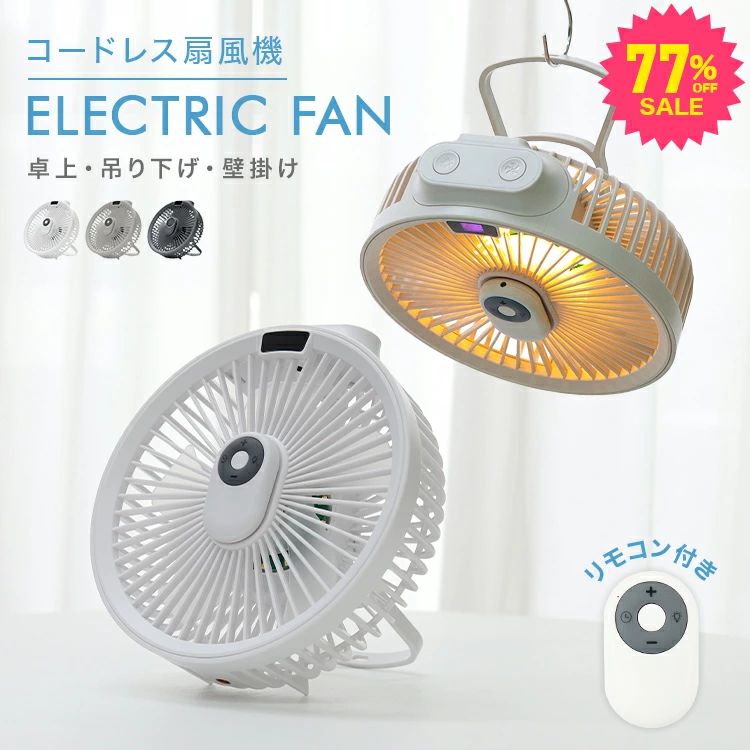 【77%OFFクーポン利用で2,280円】2025新商品 卓上扇風機 壁掛け 吊り下げ 扇風機 コードレス扇風機 マグネットリモコン付き LED照明機能