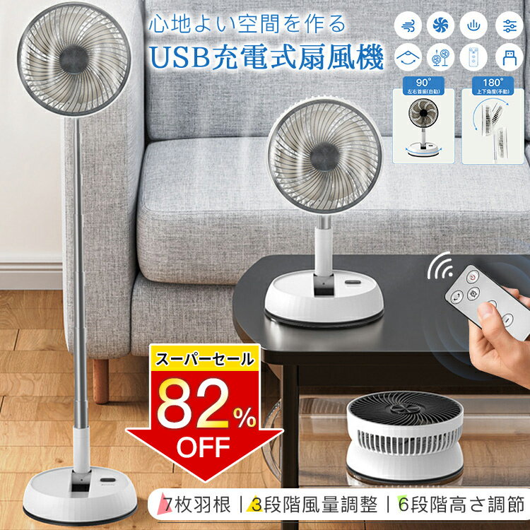 扇風機 折りたたみ USB 充電式 dcモーター サーキュレーター 首振り リモコン付き コードレス 10800mAh 静音 アウトドア キャンプ 防災グッズ