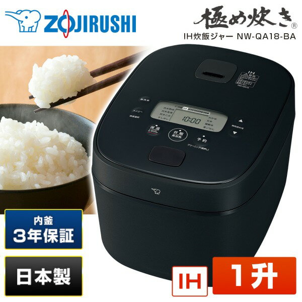 【スーパーSALE限定10%OFF】炊飯器 1升 10合 ZOJIRUSHI 象印 NW-QA18-BA ブラック 黒 極め炊き IH炊飯器 1升炊き 一升 10合炊き ふっくら おいしい ごはん 白米 新生活 エクプラ特選 2512ss