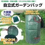 ガーデニング 自立式 ガーデン バッグ 1個 128L 蓋付 落ち葉 袋 ガーデンバケツ 収穫 集草 清掃 ゴミ バッグ 折りたたみ クリアポケット 国華園