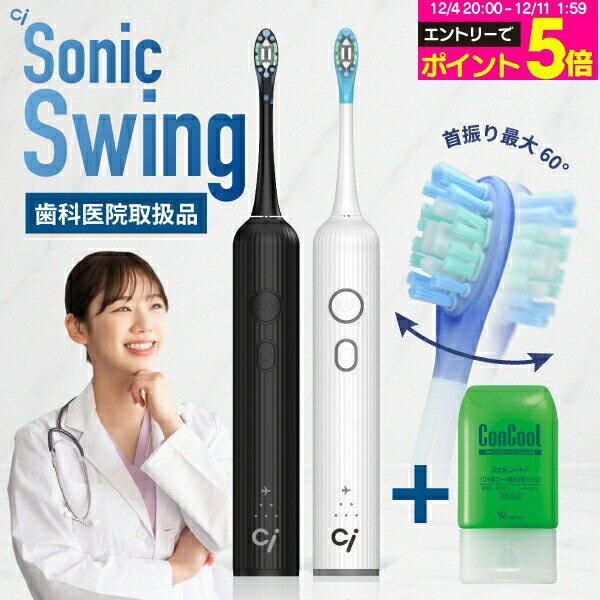 【★20%OFF】音波振動 電動 歯ブラシ Ci Sonic Swing 本体 1セット (ホワイト/ブラック) + ウェルテック コンクール ジェルコートF フッ素1450ppmF 1本(90g) 充電式 電動歯ブラシ ソニックスイング【送料無料】