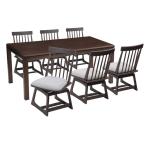 ハイタイプ高脚こたつ ダイニングコタツ TUBAKI180センチ幅 長方形+肘無回転椅子6脚の7点セット ダークブラウン色
