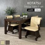 【10/15限定 ポイント10倍】ダイニングこたつテーブルセット 4人用 135 長方形 回転椅子 キャスター付き 6点セット おしゃれ